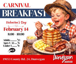 DRA Hall, 19053 County Road 24 from 8:00 AM until 10 AM. The cost is